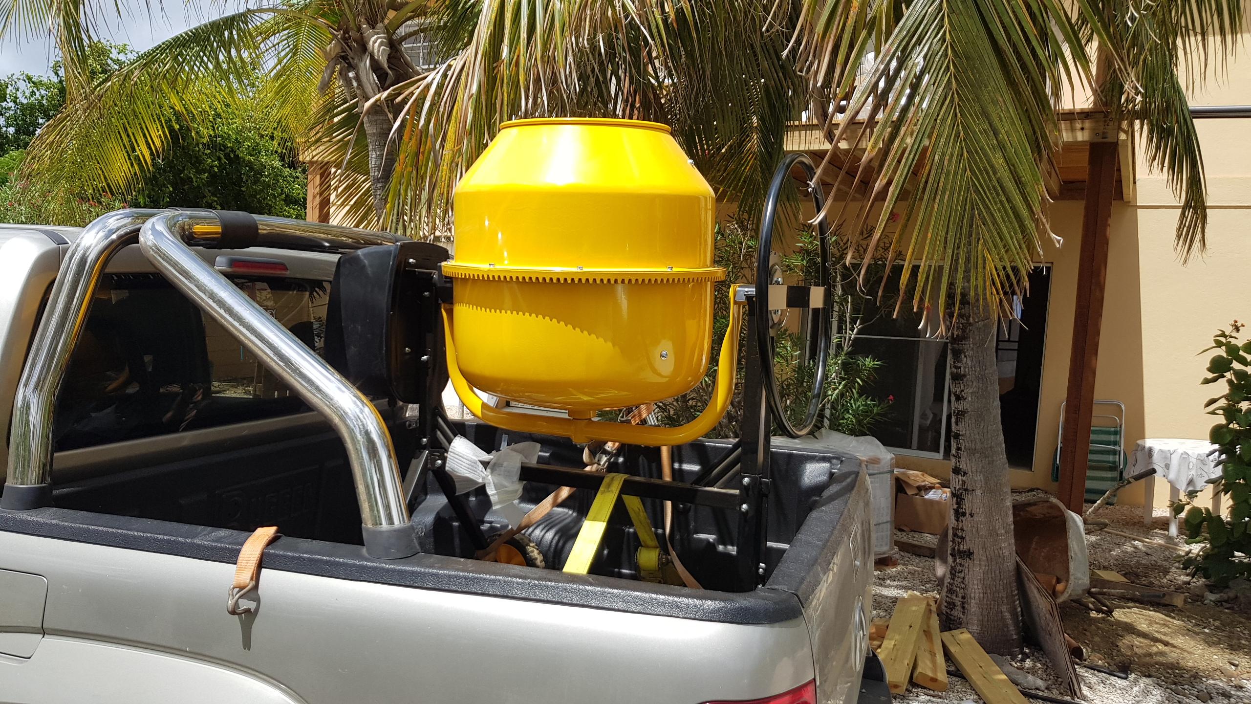 Wie had ooit gedacht dat we nog eens trotse eigenaar zouden zijn van een heuse betonmolen? Ik niet. Maar we hebben er nu een. We zullen hem voorlopig nog regelmatig nodig hebben voor beton, metselen en stucwerk (doen ze hier ook met cement). En dan is steeds huren onhandig. En als we klaar zijn verkopen we hem weer. Dan is het zelfs veel goedkoper om er nu een te kopen. En verkopen hem niet, dan kunnen we hem altijd gebruiken voor beslag voor een heel grote cake.