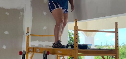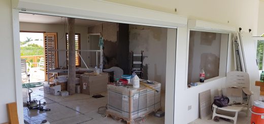 De stucadoors zijn druk bezig om alle nieuwe muren glad te krijgen en in de bestaande muren de door de elektriciens gemaakt sleuven dicht te krijgen. Opvallend dat ze hier overal cement voor gebruiken in plaats van gips. Ook experimenteren ze met een mengsel van grijze en witte cement om sommige muren een beton ‘look’ te geven. Vakmensen!
