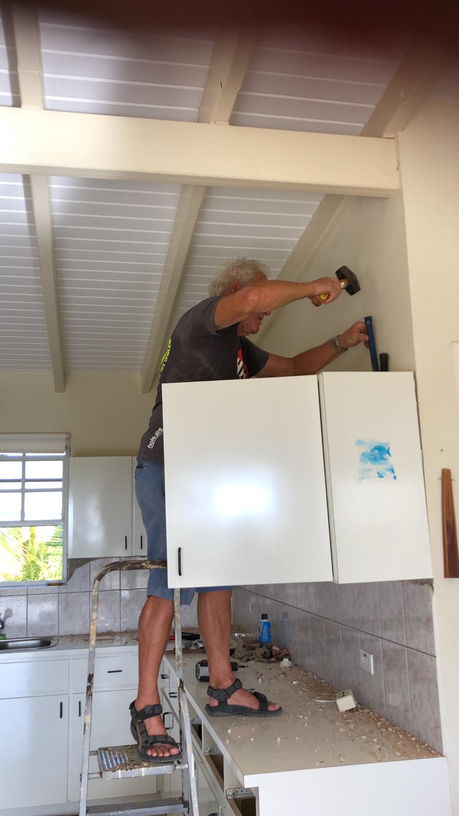 De verbouwing stond gepland voor het einde van het jaar. Maar omdat er geen huurders waren en Mattie’s ouders ook niet naar huis konden vliegen is Mattie’s vader, Jan, maar meteen begonnen met slopen. Op afstand en met de hulp van zus Monique (die hier al lang woont) maakten we plannen voor de verbouwing en gingen vast van alles inkopen, van keuken tot en met gereedschap. In afwachting dat we ooit weer konden vliegen. En ondertussen konden de ramen en kozijnen gemaakt worden en alle spullen verzameld worden voor transport met de container.