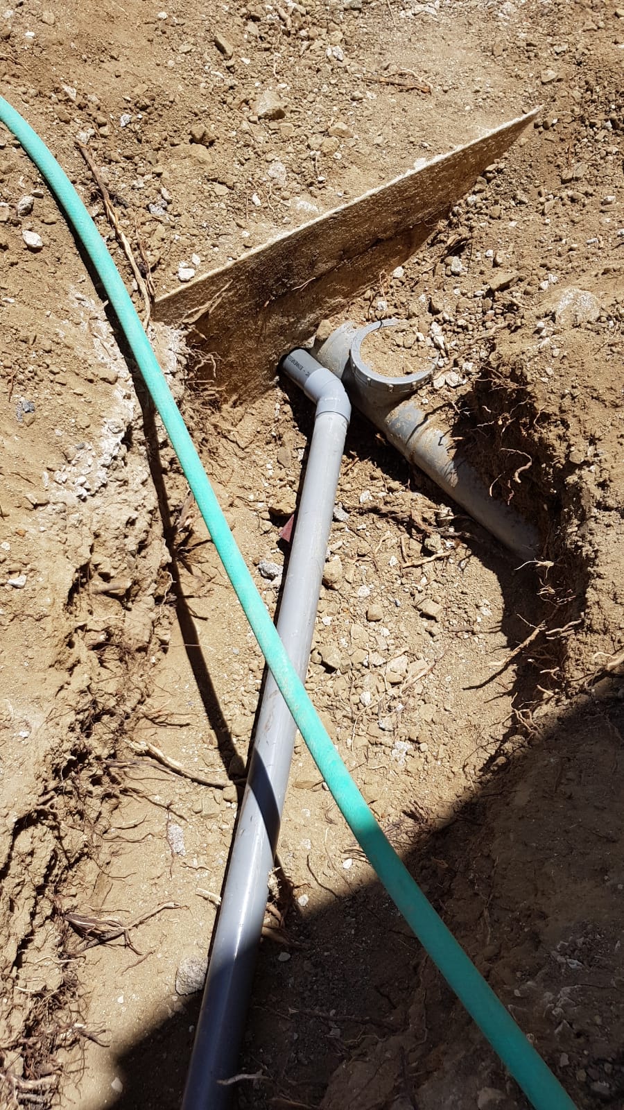 De container arriveerde een tijdje later dan ik. Dus de bouw kon nog niet beginnen, maar ik had nog genoeg doen en heb ook nog een dagje ontspannen gevist op zee. Omdat het appartement beneden een paar maanden leeg had gestaan leek het me verstandig alles even te wassen. Ik was even boodschappen doen en toen ik terug kwam stond het halve appartement onder water. De afvoer van de was machine leek verstopt te zitten, waarbij ik meteen al het vermoeden had dat er ergens boomwortels in zaten. Met Jan, Mattieās vader, hebben we er een ontstoppingsveer ingedraaid, maar dat hielp niet. Aan de buitenkant het riool opgegraven, een gat geboord en weer de veer erin en dat gaf een resultaat, maar onvoldoende. Toen ben ik twee ochtenden bezig geweest de rioolbuis op te graven in de richting van de beerput. Een loodzware klus, door rotsen en boomwortels en dat in die hitte. Uiteindelijk bleek m ijn vermoeden waarheid. Bij de aansluiting met de beerput zat een breuk en die zat vol wortels. De oude pijp eruit gehaald en met wat puzzelen een nieuwe constructie verzonnen. Bij de aanleg ervan brak de aansluiting aan de kant van het huis. Daar hebben we muur uitgehakt, een nieuwe bocht en nieuwe pijp gemaakt. Wat een klus, maar ik kon weer verder met de was!