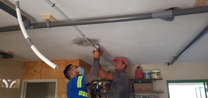 John, die de waterleidingen en de rioolpijpen aan het aanleggen is komt gelijktijdig aan met de elektricien op de kruising van water en elektra. Gelukkig spreken beiden Engels en spoedig en lossen ze het...