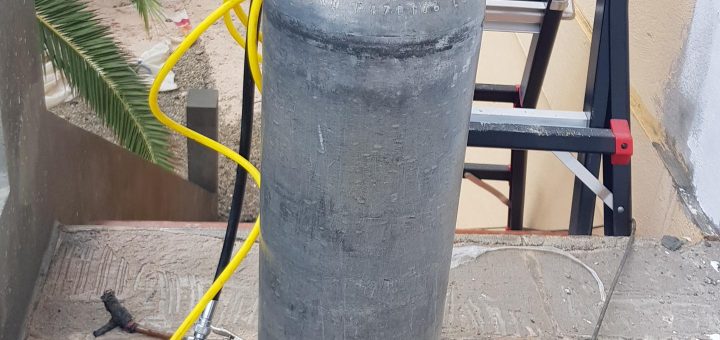 Zo’n huis zit stampvol met electriciteitsbuizen. Bij het trekken van draden moet je natuurlijk wel weten waar een en ander uit komt. Thuis doen we dat met een trekveer, maar hier blazen ze perslucht...
